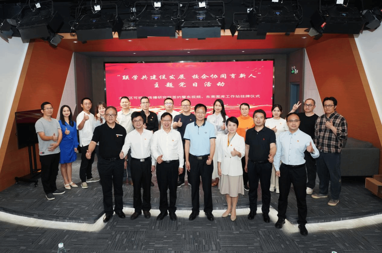 为深入开展学习贯彻习近平新时代中国特色社会主义思想主题教育,深化“校企”合作,积极探索创新型联学组织建设,积极服务粤港澳大湾区文化认同和东莞城市形象建设工作,4月27日下午,传媒系师生支部联合东莞报业传媒集团在文科楼演播厅举办“联学共建促发展 校企协同育新人”主题党日活动,并举行报业传媒集团实习基地、大湾区可视化传播研究院签约暨东视频、东莞图库工作站挂牌仪式。