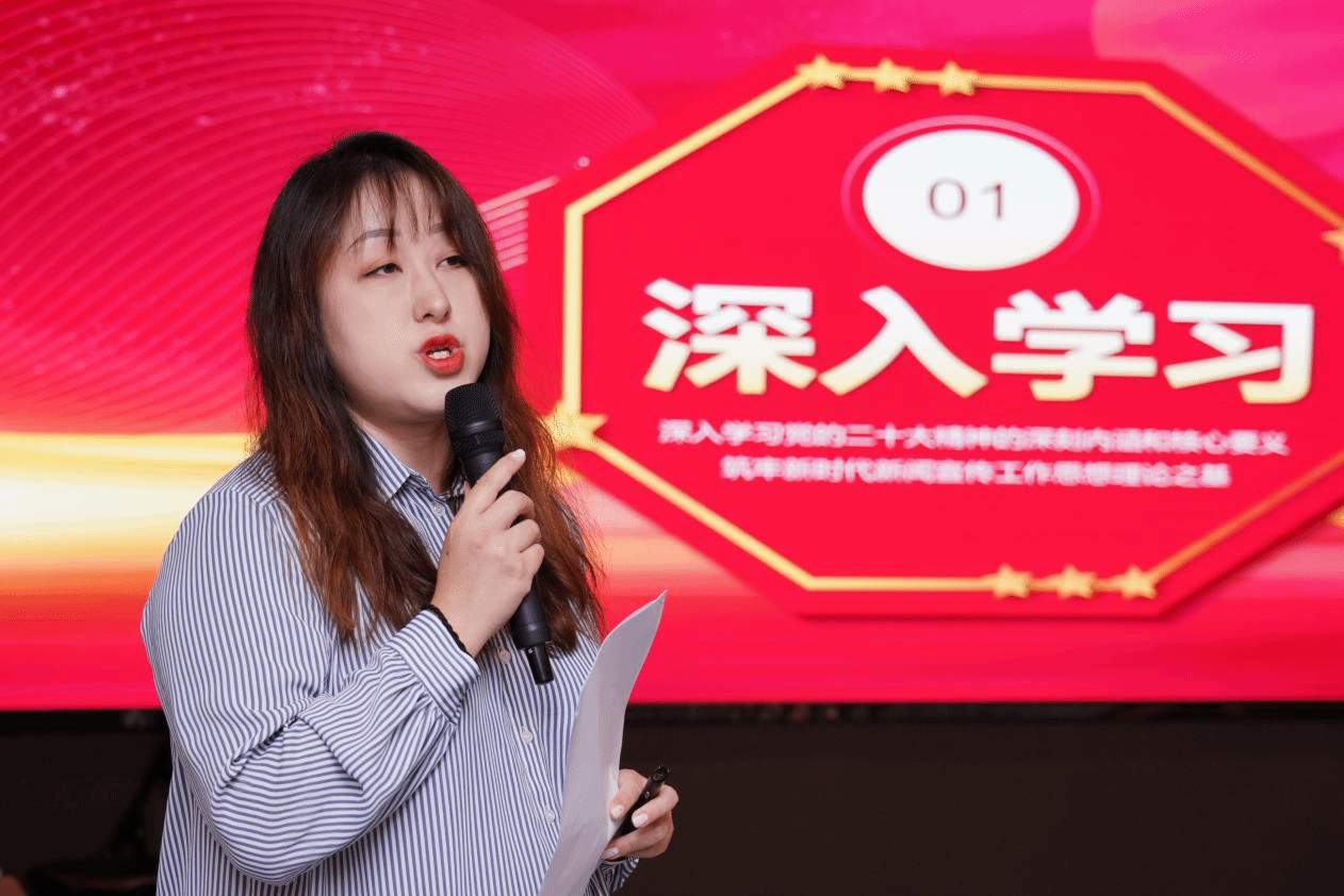 东莞日报第一党支部小组长杨溪指出,我们肩负着宣传阐释党的二十大精神的重大使命任务更要先学一步,学深一层楼深刻领悟"两个确立",增强"四个意识"、坚定"四个自信"、做到"两个维护"。要持续做好党的二十大精神宣传报道,做党的主张的"扬声器";奋力推进媒体深度融合改革,做党的二十大精神宣传的"金话筒"。