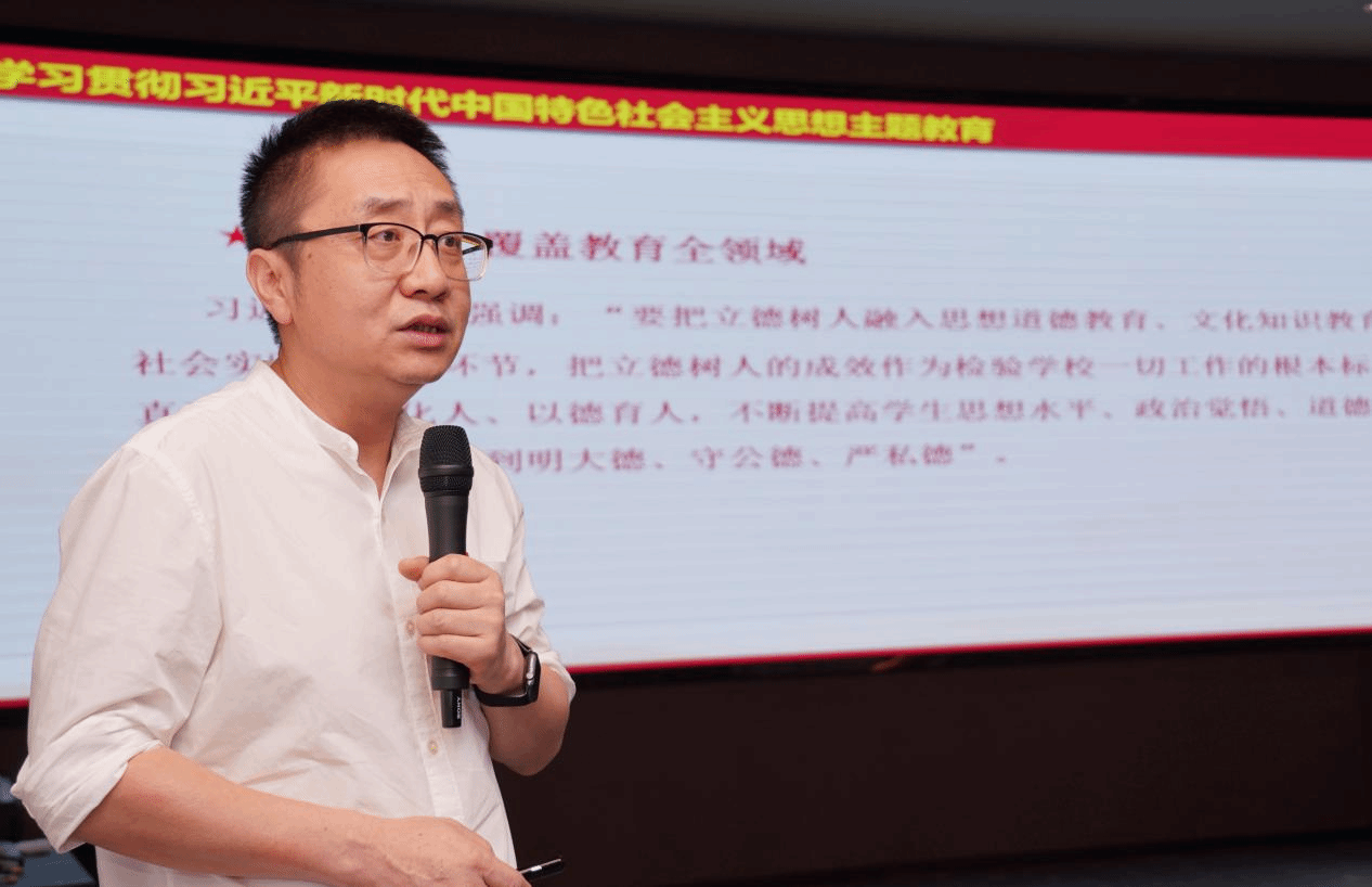 bevictor伟德官网传媒系教工支部书记郑路为党员师生作习近平新时代育人思想领学。郑路书记指出,学习贯彻习近平新时代中国特色社会主义思想,就是要把立德作为教育工作的根本任务。广播电视学专业作为课程思政建设示范专业,坚持把思政教育"小课堂"融入社会"大课堂",结合专业特色,带领员工发现中国精神、纪录时代脉搏,在实践中学真知、悟真谛,把立德树人的思想理念经过实践转化为个人本领和能力。