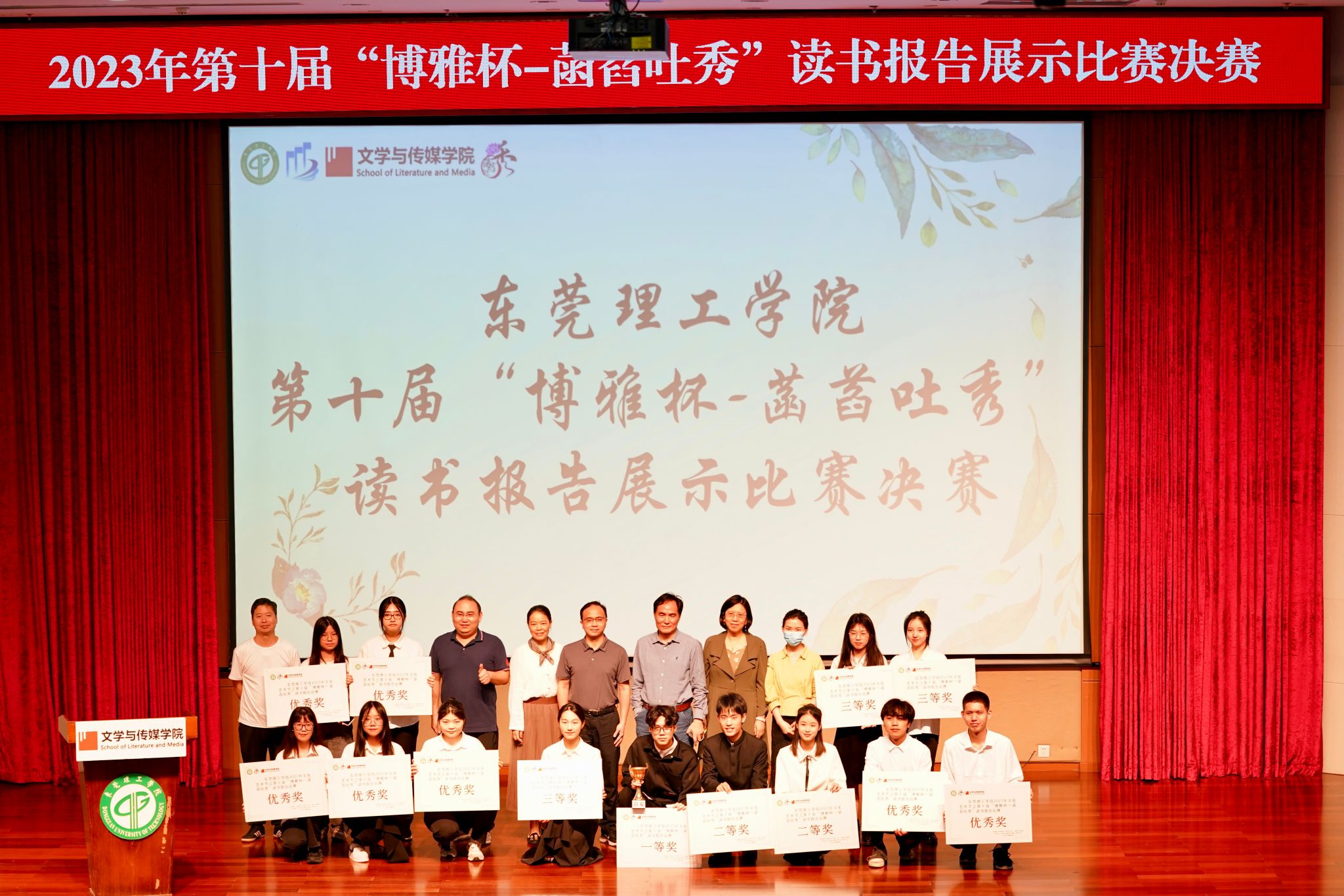 4月22日,世界读书日前夕,bevictor伟德官网承办的校园文化艺术节第十届“博雅杯—菡萏吐秀”读书报告决赛在松山湖校区学术会议交流中心举行。