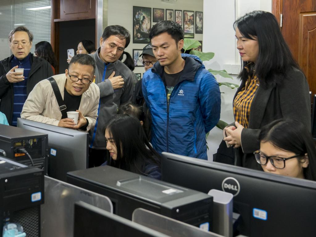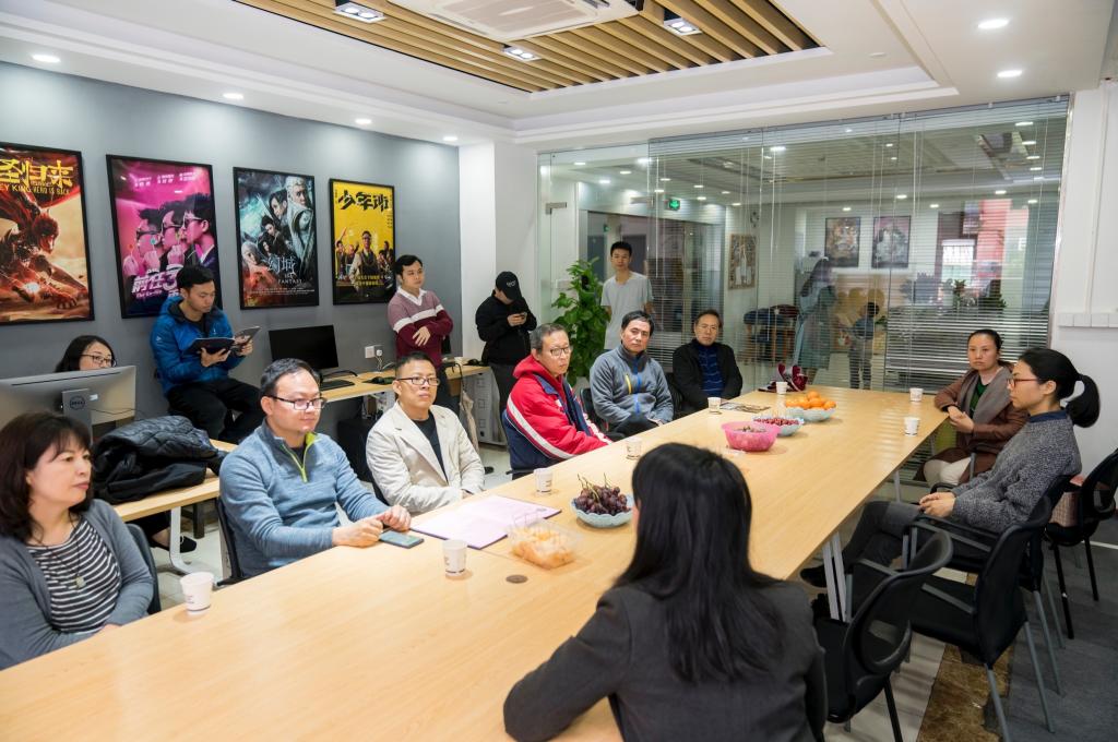 麦田华彩公司总经理简女士带着我们参观了麦田华彩公司的工作环境,并向我们介绍了麦田华彩公司的整体业务运营情况,结合视频资料重点介绍了该公司以往参与过的重大影视后期项目和影视人才培养体系。
