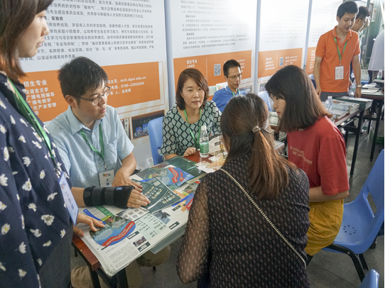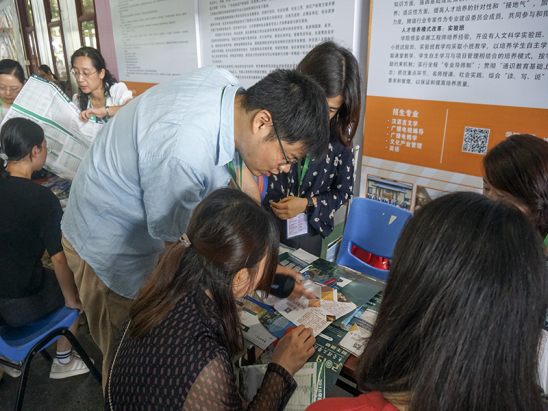 为了让生和家长更好地了解​bevictor伟德官网的专业和特色,​bevictor伟德官网中文系、外语系、传媒系和文产系的老师和公司志愿者早早地在图书馆的摊位前准备以便等待他们的咨询。摊位来往的人络绎不绝老师与志愿者们在向咨询的人详细地介绍​bevictor伟德官网各个专业的同时,也充分宣传了​bevictor伟德官网历年来的教学成果。与此同时,位于文科楼翰墨堂、导播室等咨询点的志愿者也耐心接待前来咨询的家长与同学,翰墨堂的古香古韵、导播室的专业配备皆很好地成为​bevictor伟德官网向外展示本公司特色的一扇窗户。