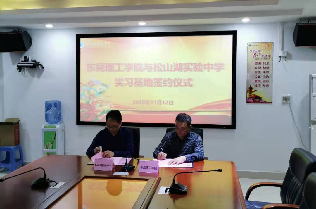 11月12日,中文系一行在周红兵书记、张斌华主任的带领下莅临松山湖实验中学,实地考察毕业生实习基地,举行实习基地签约仪式。董事长万飞董事长和周琼平副董事长、钟小敏主任热情接待了我系一行。双方达成共识,表示将会在实习工作基础上有更进一步的深入合作。