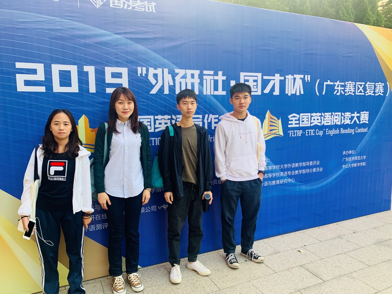 11月9日,2019年全国英语阅读比赛暨“外研社﹒国才杯”阅读比赛广东赛区决赛和2019年全国英语写作比赛暨“外研社﹒国才杯”写作比赛广东赛区决赛在广东技术师范大学成功举行。本次比赛由教育部高等公司大学外语教学指导委员会、教育部高等公司英语专业教学指导分委员会、中国外语与教育研究中心和外语教学与研究出版社主办,广东技术师范大学承办。经过全省各高校初赛,共有来自54所高校的198名选手和来自63所高校的140名选手分别参加了本次阅读比赛和写作比赛。在公司刘萍老师的带队下,公司生态环境与建筑工程公司的苏城远同学和网络空间安全公司的王佳航同学参加了本次阅读比赛;经济与管理公司的张丽君同学参加了本次写作比赛。