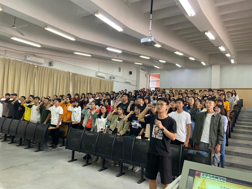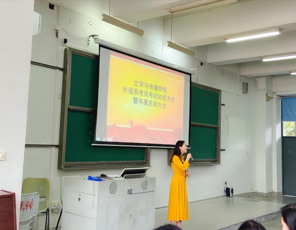 2019年12月18日13:30,外语系17、18、19级全体员工在辅导员姜慧慧老师的动员下,在教学楼6E206召开外语系考风考纪动员大会暨年度总结大会。