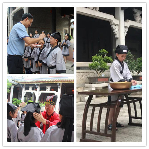 在开班仪式上,正衣冠、净手净心、行拜师礼、朱砂启智、朝拜孔子等一系列仪式带领小学员们学习传统礼仪、体验传统文化,以表对圣人、师者的敬仰,对传统文化的尊崇。