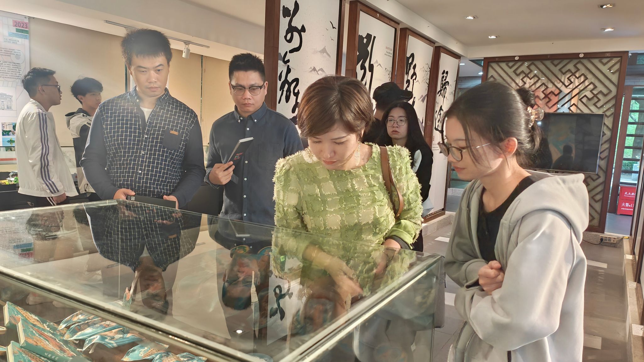 开班仪式结束后,参会师生、业界嘉宾共同到文科楼翰墨堂参观2023年“复苏”文化产业管理专业毕业设计展。