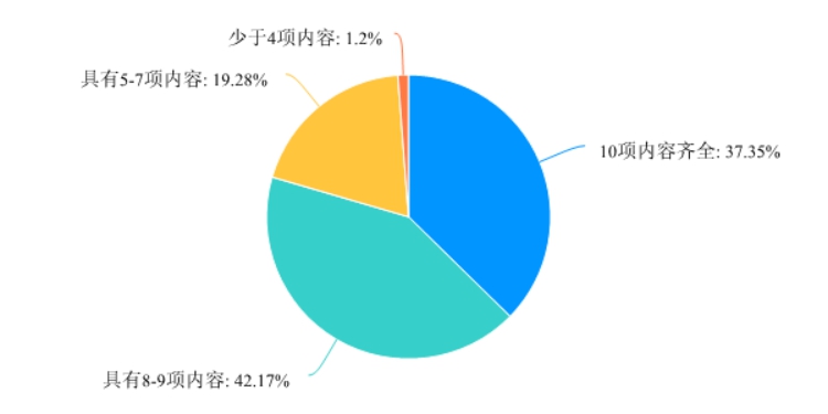 在调查问卷中,10项教学内容资源齐全的教师占37.35%;具有8-9项教学内容资源的教师占42.17%;具有5-7项教学内容资源的教师占19.28%;少于4项教学内容资源的教师占1.2%。