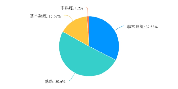 在调查问卷中,在线操作非常熟练的教师占32.53%;在线操作熟练的教师占50.6%;在线操作基本熟练的教师占15.66%;在线操作不熟练的教师占1.2%。