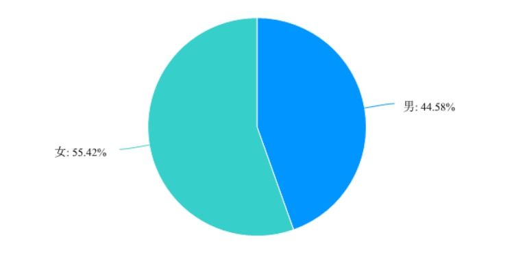 在调查问卷中,男教师填写人数占比44.58%;女教师填写人数占比55.42%。