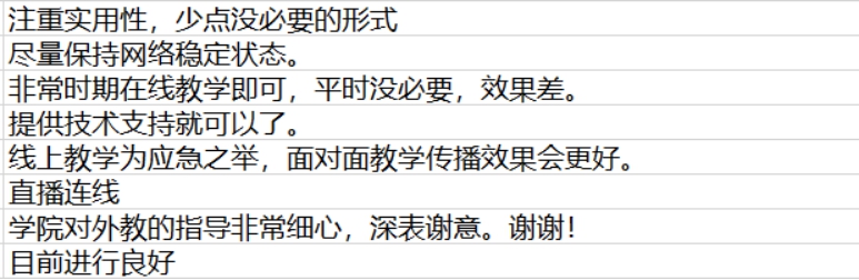 教师在校外开展在线教学还是会遇到很多问题,需要公司及时跟进问题,及时帮助教师改善在线教学存在的困难,更好地开展在线教学,完成教学任务。
