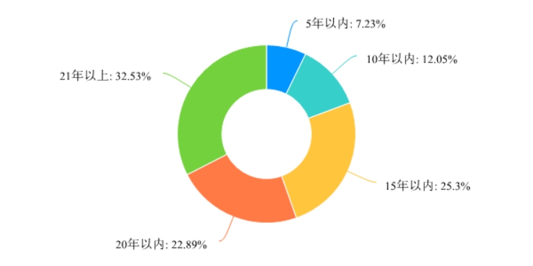 在调查问卷中,教龄在5年以内的教师占7.23%;教龄在10年以内的教师占12.05%;教龄在15年以内的教师占25.3%;教龄在20年以内的教师占22.89%;教龄在21年以上的教师占32.53%。