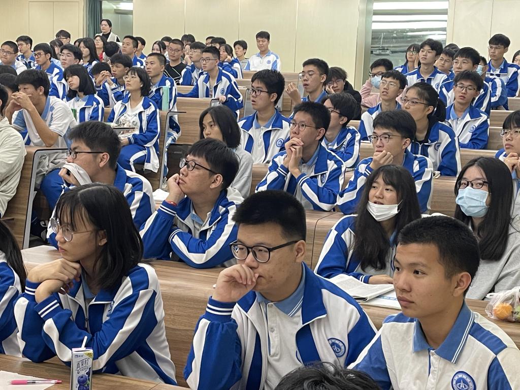 讲座从“为什么要上大学”这个问题开始,引发高三学子思考,然后从粤港澳大湾区发展,个人在大学可以收获到什么,在大学要怎么学习才能满足国家发展需要等方面进行阐述去回答“为什么要上大学”的问题。讲座期间氛围和谐,反响热烈,互动友好,同学们聚精会神、点头示意传达出对内容的赞赏与收获。