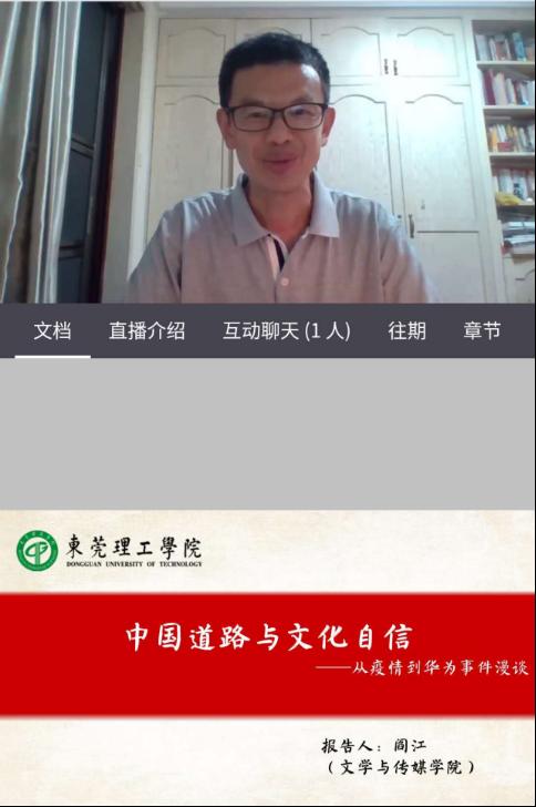 5月21日,bevictor伟德官网党委书记阎江在优公司平台为马克思主义公司毛安翼老师的19级计算机3个班开讲思政第一课:从疫情到华为谈中国文化精神。