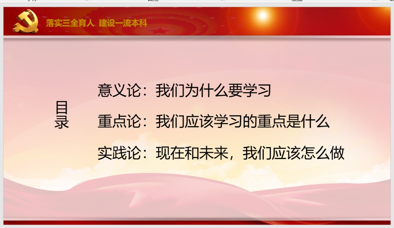 本次主题党日活动从姜老师的主题党课开始,她从“意义论、重点论、实践论”三个层面带领党支部成员深入学习了习近平总书记关于教育的重要论述。支部成员通过姜老师的讲解、剖析和引伸,进一步学习了习近平总书记关于教育的重要论述,让我们更深的理解了新时代我国教育改革发展的根本遵循;从不同的身份出发,进一步深层思考了教育的意义和重大作用;以及,进一步思考未来的方向以及着眼当下的行动。