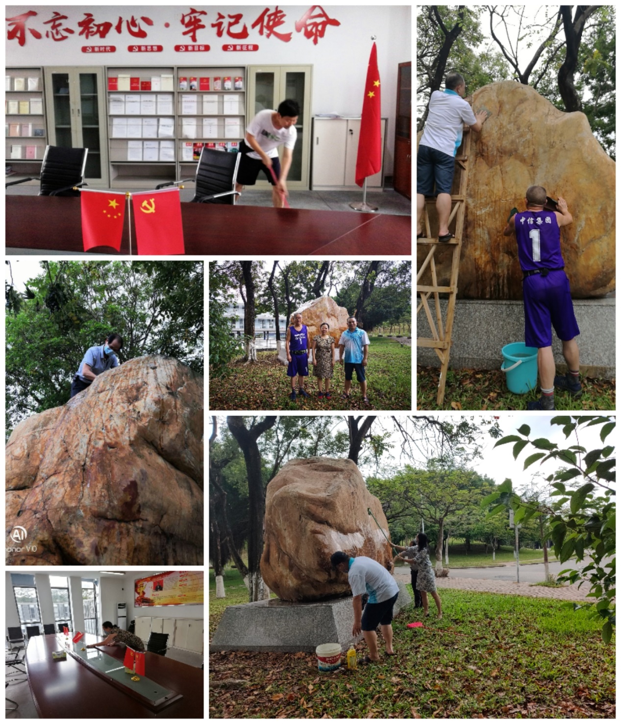在党支部书记周红兵同志的带领下,卫生清洁工作开展得如火如荼。周红兵同志准备充分,身先士卒,亲力亲为。退休党员教师靖辉同志按组织部安排继续在中文系党支部参加党日活动,也主动参与,不落人后,并特别奉献专用油供员工石上油。靖老师表示:“我虽然退休了,但‘老骥伏枥,壮心不已’,在中文系党支部这个大家庭中奉献自己,有一份力尽一份力,有一丝光发一丝光。”