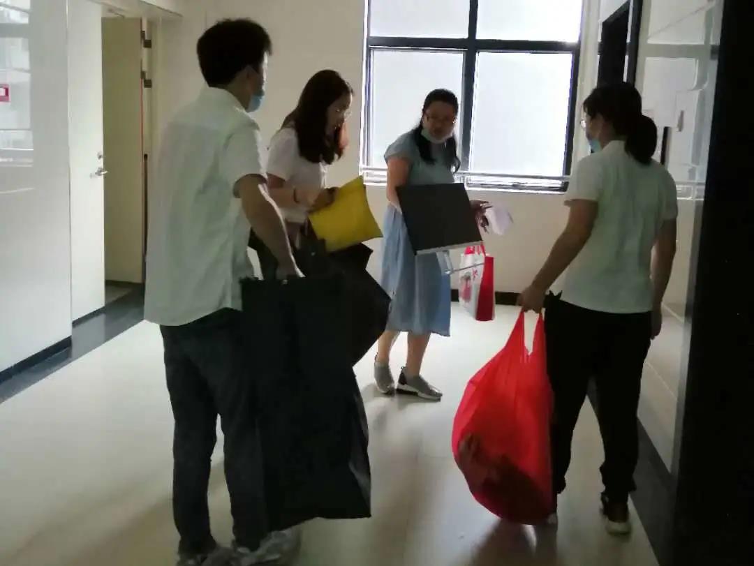 由于离校时间过久、有些同学忘记物品具体存放位置各位老师到达现场后再次与员工通过多次电话沟通的方式确定需要物品的位置,确保物品不错拿。细心的老师们还检查了同学们没有及时处理的生活物品(例如食品及衣物等)。之后再用电动车、三轮车、等从宿舍区搬运到北门给辛苦等待的同学们。经过老师们先后两个下午的忙活、同学们都顺利拿到了自己需要的学习用品。