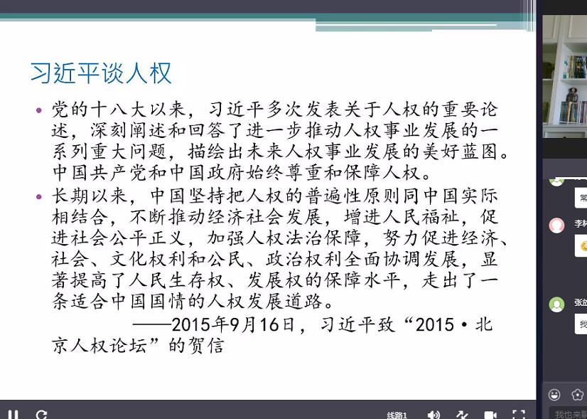 就疫情防控下的人权问题,我国政府一贯奉行以人民为中心的人权理念,尽最大努力阻断疫情传播、全力治病救人,优先保障人民生存权。正如总书记所说的那样,长期以来,中国坚持把人权的普遍性原则同中国实际相结合,不断推动经济社会发展,增进人民福祉,促进社会公平正义,加强人权法治保障,努力促进经济、社会、文化权利和公民、政治权利全面协调发展,显著提高了人民生存权、发展权的保障水平,走出了一条适合中国国情的人权发展道路。
