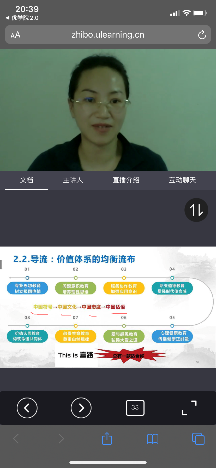 在一个小时的分享过程中,许燕转老师通过对课程思政概念的梳理,对五大认识误区的剖析,提出课程思政是解决中世纪以来学科细化和教学育人的根本目的矛盾的时代需求。提出疫情时期,课程思政设计体现出向时而问的问题意识、因事而化的具体时机、因时而进的强烈吁求、因势而新的知识关联的新特点。并通过四大案例组(传媒、文产、英语、中文)的课程群课程思政设计案例,一一解析了课程思政设计的时代逻辑和创新方法,最后还提出了评价效度和宏观层面的建议。直播中,老师们多次互动交流点赞送花,好评如潮,反响热烈,老师们纷纷表示课程思政原来可以有这样的深度、广度、高度和有趣。