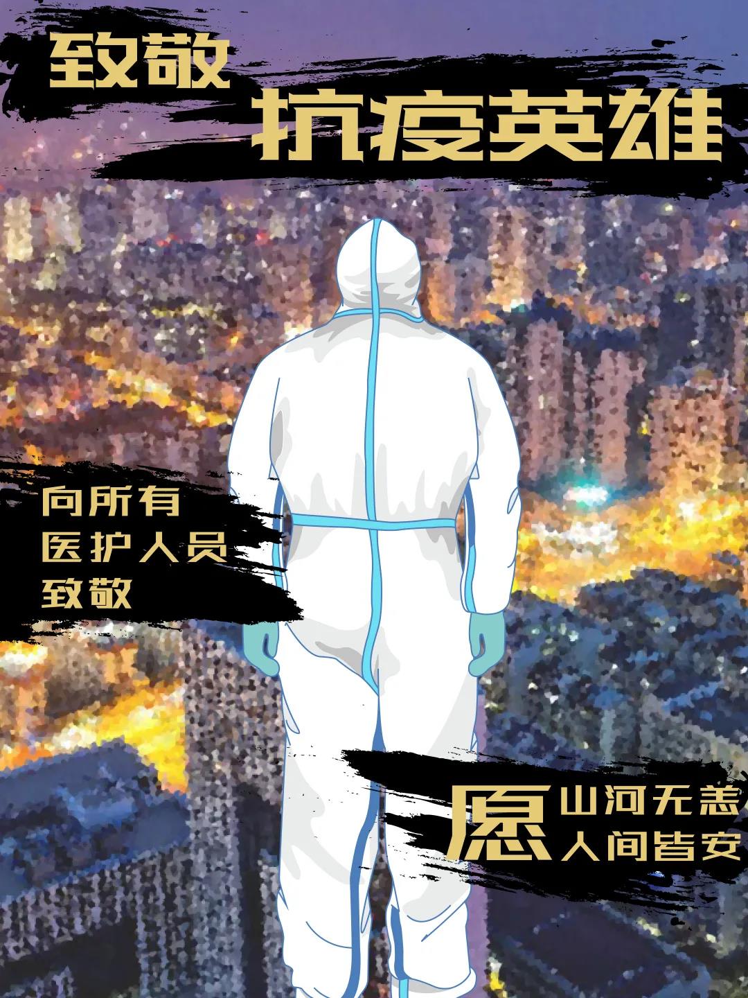 有这么一群人,抗击“非典“后,时隔十七年,再披“战袍“,奋战抗”疫“前线。他们说这是”职责所在不退缩“,”用生命接力抗‘疫’”,”越是艰险越向前“,这身防护服是他们心中对生命的坚守与大无畏精神的见证。海报以此为创作中心,致敬前线的抗”疫“战士。