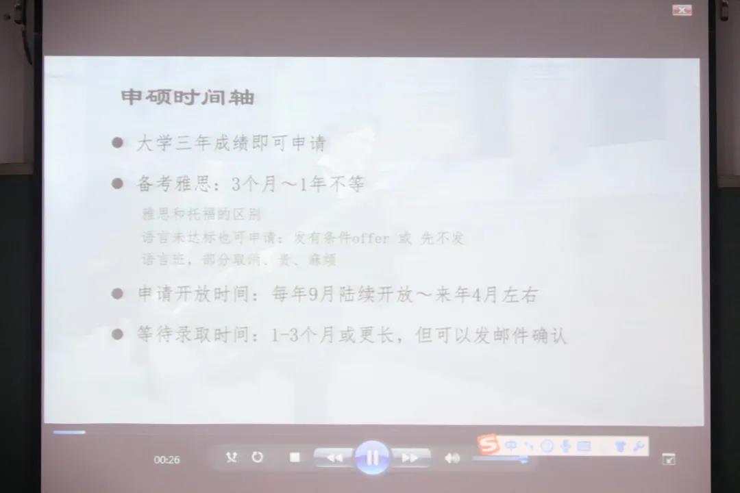 让同学们对留学的流程有了一定了解。然后分享了自己的学习英语技巧: