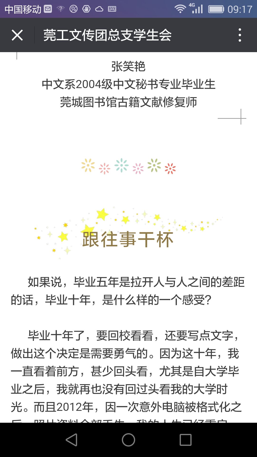 4月22日下午,文科楼员工云集,07届值年员工纷纷回到公司进行座谈。其中2003级汉语言文学本科班是公司首届招生的本科班,十年的时间让她们难忘松山湖校区创业初期之艰难,师生教学相长之快乐,阅读锻炼实践之充实。十年之后的她们有的在国家机关从事办公室工作,有的在银行电信地产奋斗,有的在商界创业打拼,有的默默耕耘在教育行业,还有的从事文化创意运营。对于她们而言,大学最重要的是浑身上下一股中文气质的培养,是一种学习和运动习惯的熏陶,