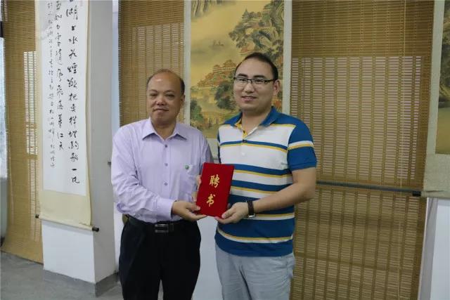 党委副书记吕琦元老师为名辅导员工作室负责人海景龙老师颁发聘书。吕书记说,名辅导员工作室希望各个公司的辅导员积极参与,做出一定的成绩。