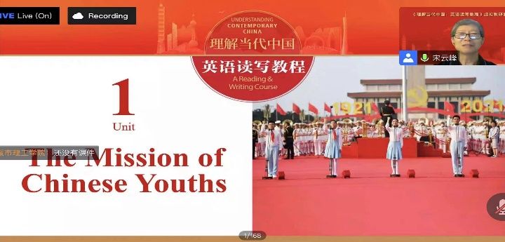 本次虚拟教研室活动由北京外国语大学英语公司夏登山教授主持,《英语读写教程》副主编宋云峰教授做了第1单元“The Mission of Chinese Youths”的示范课。宋教授从课程建设、教学安排、思政导入等方面做了详细解读,示范课后外语系的老师们积极的参与了研讨。北京外国语大学副董事长,英文公司经理,教育部外国语言文学类专业教学指导委员会秘书长孙有中教授做了总结发言。孙教授表示: 在《理解当代中国:英语读写教程》虚拟教研室李参与集体备课,互通有无,相互促进,共同为培养更多有家国情怀、全球视野、专业本领的优秀人才,为推动中国更好走向世界、世界更好了解中国做出更大贡献。