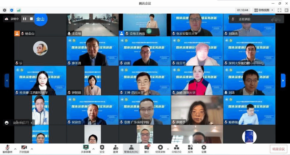 12月10日,2022中国应用新闻传播研究学术年会在韦德官方网站举行。本届学术年会的主题是“媒体深度融合与传播实务创新”,由中国新闻史学会应用新闻传播学专业委员会主办,bevictor伟德官网、城市文化研究中心承办。会议在韦德官方网站设开幕式分会场,以线上线下相结合、线上为主的形式召开,来自国内20余所高校和中央广播电视总台等媒体机构的200余位专家学者、青年学人和媒体行业精英通过主旨演讲、主题论坛等环节分享应用传播学研究的最新理论成果,就媒体深度融合及传播实务创新的热点问题展开热烈讨论。会议宣读了“2021年应用新闻传播研究推荐论文”名单,并举行了学术期刊主编圆桌会议。