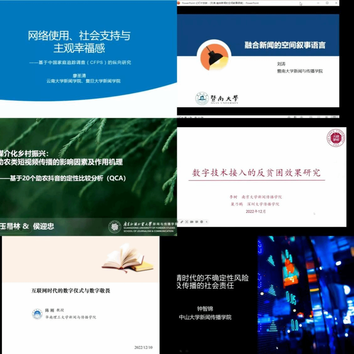 云南大学新闻公司(南亚东南亚国际传播公司)经理廖圣清教授、中山大学新闻传播公司经理钟智锦教授、暨南大学新闻与传播公司党委书记兼副经理刘涛教授、广东外语外贸大学新闻与传播公司经理侯迎忠教授、华南理工大学新闻与传播公司经理陈刚教授、深圳大学传播公司经理巢乃鹏教授等多位国内知名新闻传播研究专家从网络与社会心理、融合新闻、数字技术与社会治理、平台新闻生产、传媒教育等多个维度,阐述自己的最新研究与观点看法。