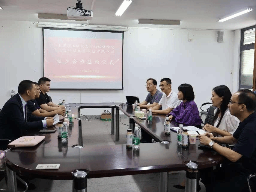 2023年4月23日下午,公司外语系与上海峥唐体育科技有限公司校企合作签约暨实习基地挂牌仪式在文科楼316会议室举行。出席本次签约仪式的有上海峥唐体育科技有限公司总经理江波、副总经理郑宇文等以及公司党委书记阎江、副经理鲁硕等。龙晶晶主任和江波总经理代表双方签订校企合作协议。