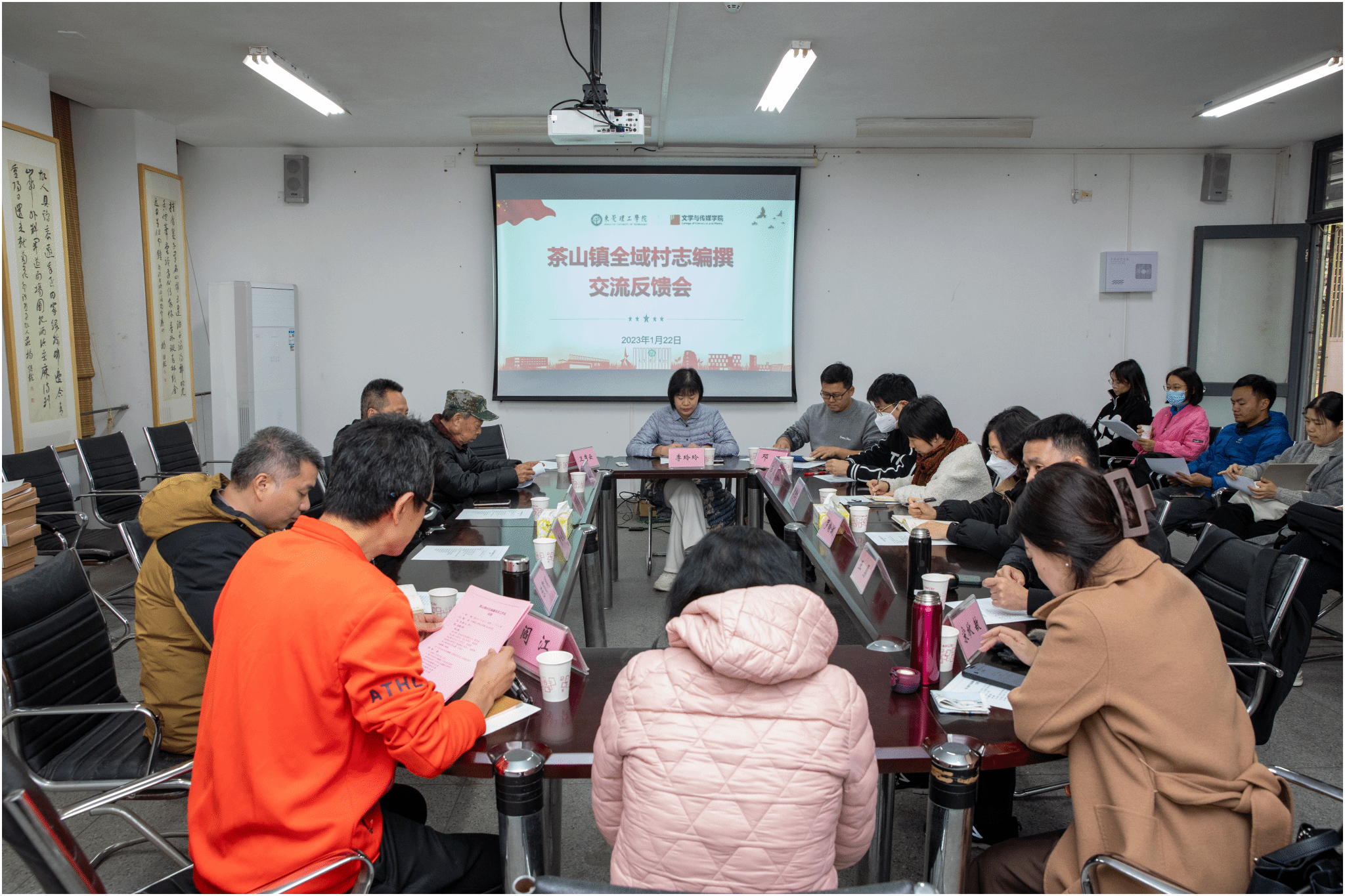 1 月 22 日下午,茶山镇村志编修工程交流反馈会在bevictor伟德官网举行。茶山镇人民政府四级高级主办谢庆春、一级主任科员袁松煜、文史研究员陈贺周、茶园游会传承人骆炳根、供销社原主任卫秀云,bevictor伟德官网经理郑坚、党委书记阎江以及茶山镇各村(社区)村志编撰项目组成员出席了会议。