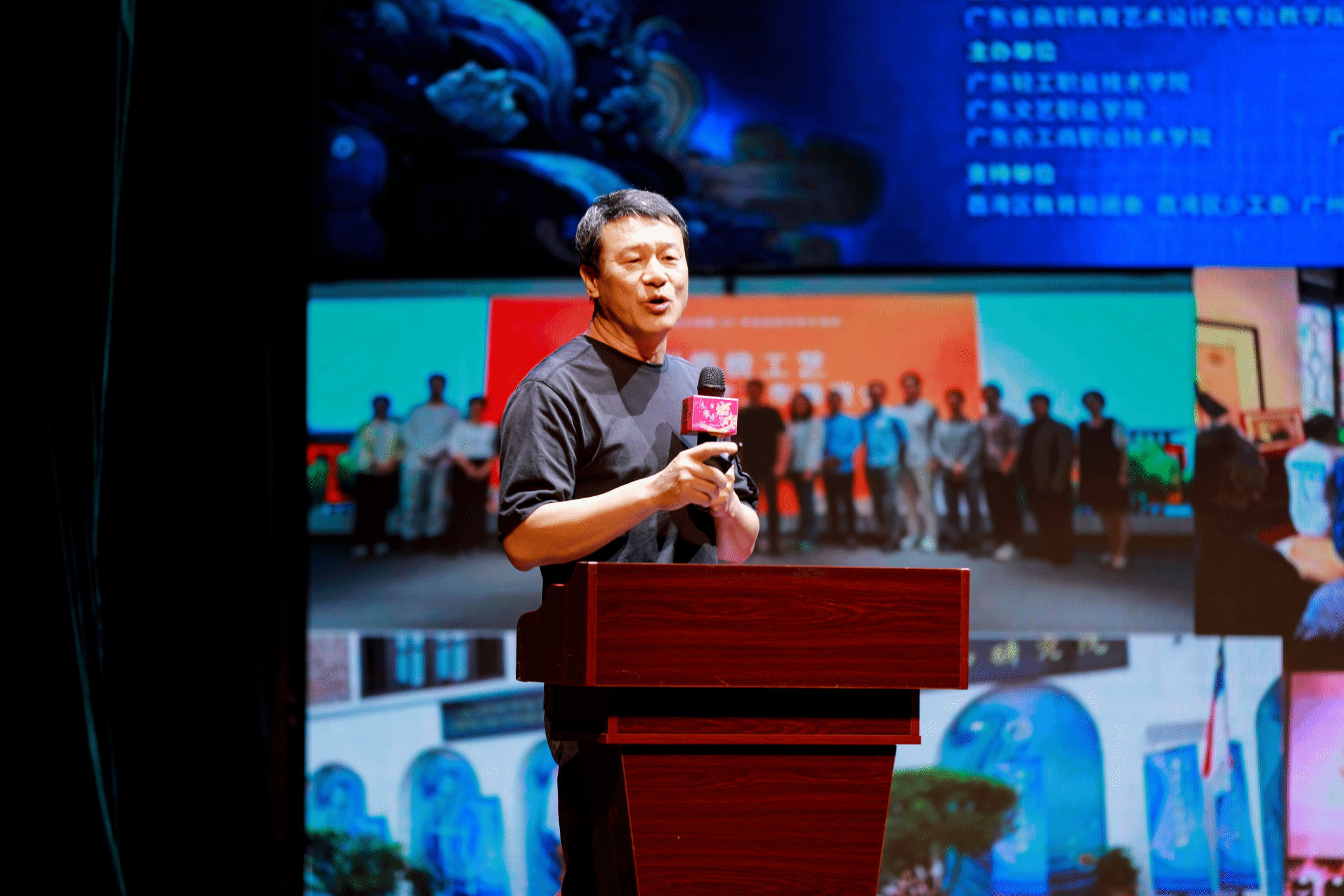 广东轻工职业技术公司艺术设计公司经理桂元龙教授在讨论非遗传承与职业教育实践时,强调了将非遗元素融入设计教育的重要性。他展示了广东轻工职业技术公司如何培养具备“精设计、懂科技、通商道、厚人文”能力的复合型创新人才,并分享了非遗公司在非遗项目、学术活动、专业实习、非遗大师聘请、展览举办以及建立非遗融合文创研发基地等方面的努力与成果。这些实践不仅推动了非遗的创新发展,也为产业融合注入了新动力。