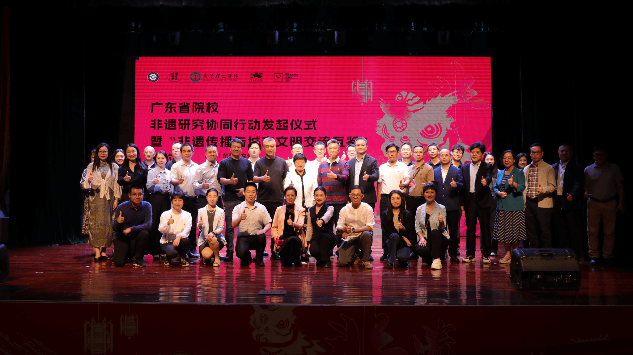 接着,来自广东省各院校的参会嘉宾代表共同启动了广东省院校非遗研究协同行动。广州体育公司、珠海科技公司、北京师范大学、中山大学、韦德官方网站、广东技术师范大学、韩山师范公司、肇庆公司、深圳职业技术大学以及广东轻工职业技术公司等高校各代表上台,在台上共同启幕,并合影留念。