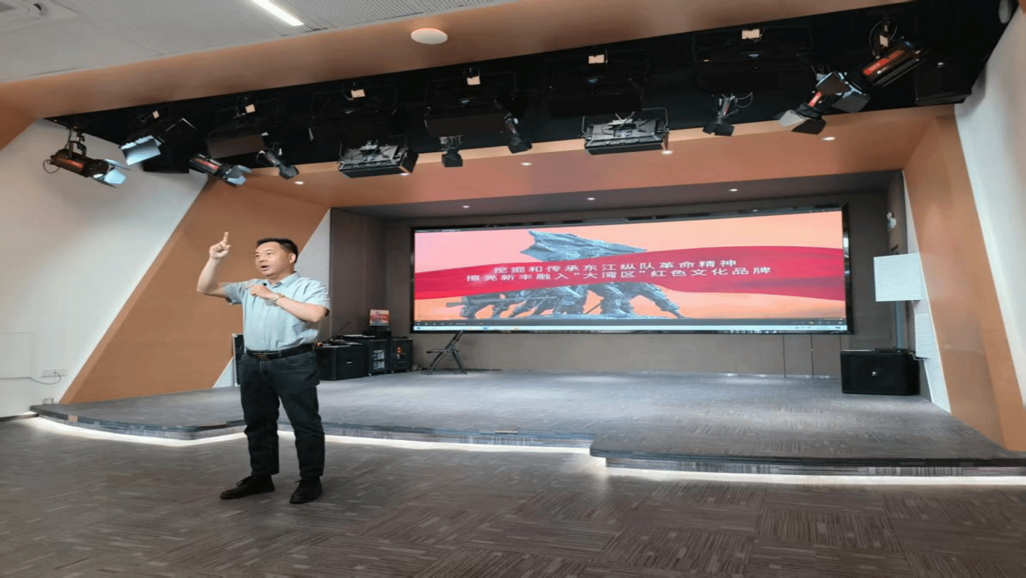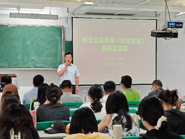 上午10时30分,会议正式开始。传媒系主任杨金山作为主持人首先登台,他详细阐述了本次创研会的举办背景。杨金山强调,红色故事作为革命精神的具象载体,在新时代传承红色基因方面占据核心地位,而纪实影像凭借真实画面与生动叙事,在传播红色故事上具有独特优势。