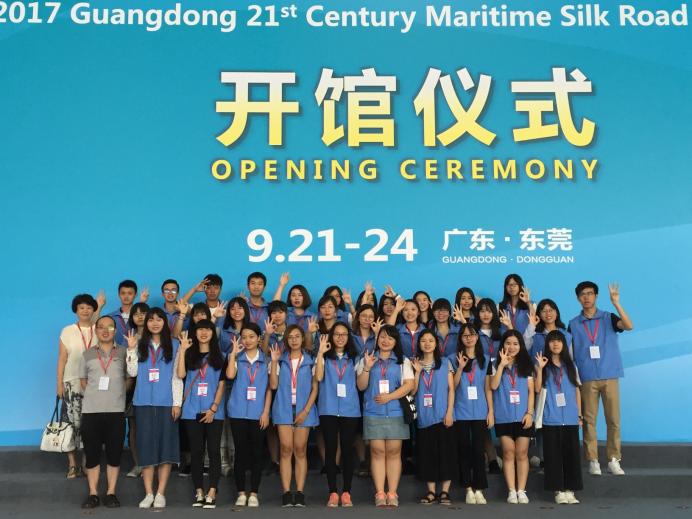 英语专业同学参加一年一度的广东省海博会会展,为各国参展商提供专业的翻译与沟通服务,赢得了会展主办方与参展商的认可与好评,连续几年获得马来西亚大使馆的感谢信。